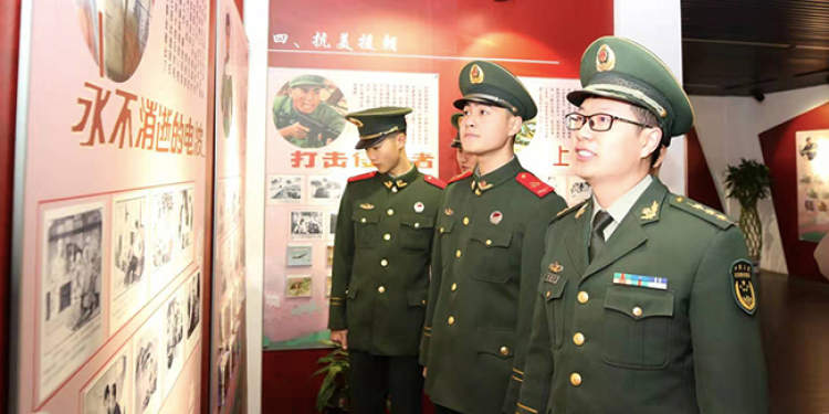 悼念仪式结束后,武警官兵还在讲解员的带领下参观了《初心使命——红色经典连环画作品展》,一幅幅经典的红色连环画,记录着那硝烟弥漫的战争岁月,承载了艰苦卓绝的斗争史。