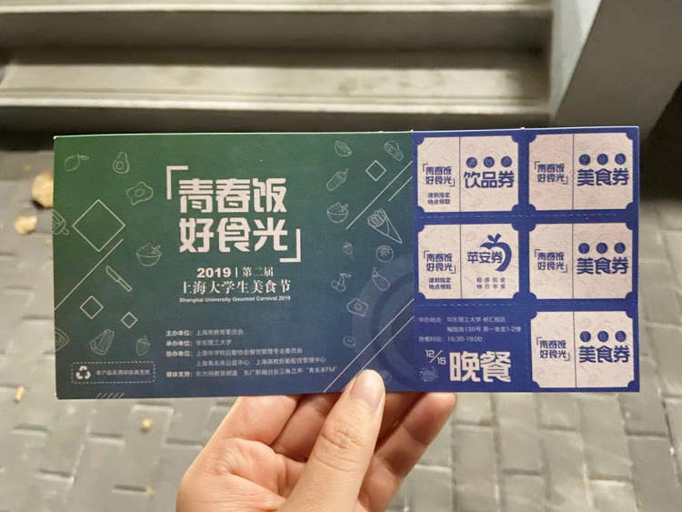美食节凭票入场。每人可凭票在现场取3份菜品,1份饮品以及1个苹果。在食堂二楼参与答题并回答正确后,还可以获得由校方准备的环保小礼品一份