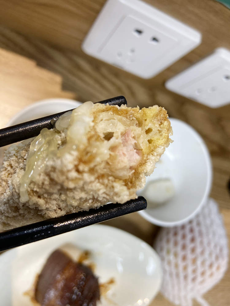 上音的本帮沙律油条就深得周到君的心。本来以为油条再次油炸之后会有一股油味,再配上色拉酱会腻口,等真正吃到嘴里才感觉到,油条的爽脆搭配内里肉馅的鲜香,再辅以色拉酱的香甜,简直不能再棒!但是菜品的颜值,在食堂里怕是难再看到咯……