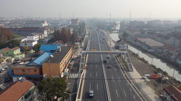 建设者的改建成果主要是:拓宽改建既有道路,拆除并新建地面非通航桥梁14座、通航桥梁3座,拼宽改建G1503跨线桥1座,新建人行天桥1座、箱涵5座,并同步实施排水、交通标志标线、交通信号及照明、绿化、交通安全等附属工程,建设规模为双向6车道。工程建成通车后,将有效缓解沿线诸镇的交通压力。