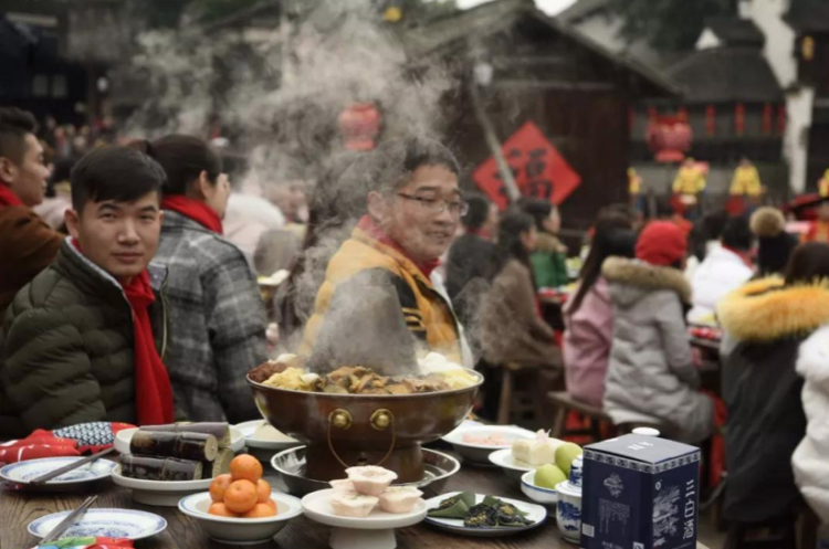 今日乌镇仍坚守着这份原始而纯真的习俗,在年初一至年初五,西栅茶艺街一带,花灯装饰,长方桌一字排开,互不认识的游客毗邻而坐,喝一杯三白酒暖暖身,就酒吃着紫铜暖锅里地道的“大锅菜”,与同桌的游客唠家常,谈天说地……