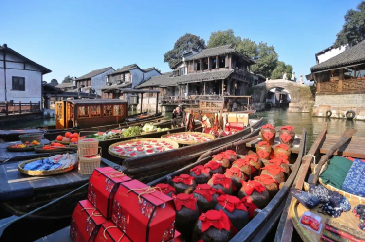 今冬,乌镇恢复这一传统年俗,2020年1月17日(小年)开始,乌镇西栅的水上集市将迎着新春开张,叫卖声此起彼伏,欢迎四方游客装满年货的船只停靠在旁,年货摊上,炸春卷、定胜糕、海棠糕、如意汤圆等小吃琳琳琅满目。