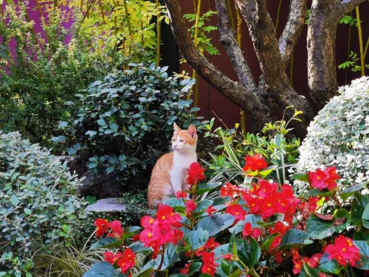 精致的小花境与特选造型的垂直梅、红梅、红枫、鸡爪槭、羽毛枫分布在庭院内各处,日间青枝绿叶、繁花似锦,夜晚结合庭院灯光,又是另外一番树影婆娑、恬静高雅的景致。