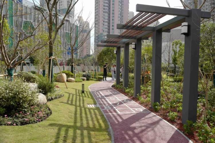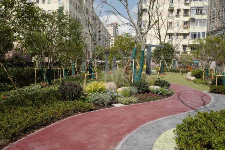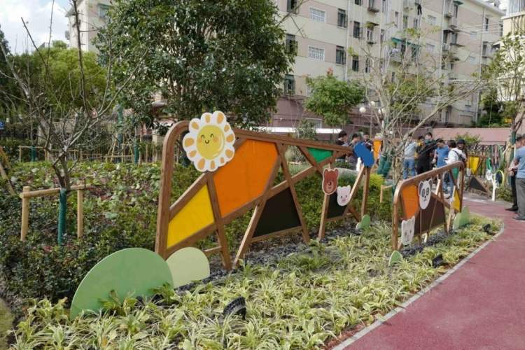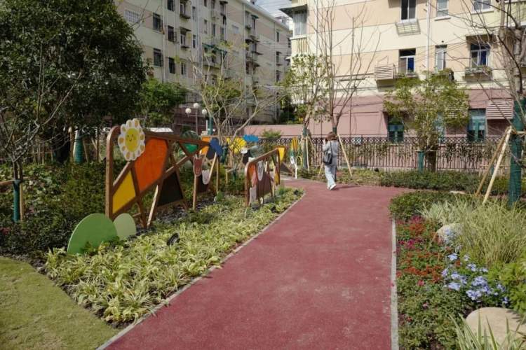 虹口区通州路童梦园街心花园结合周边风貌、地域特点营建,是一座具有虹口特色、富有童趣和兼具植物科普功能的街心花园。