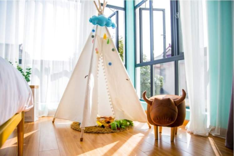 彩绘之家仿佛是上帝打翻了颜料盘,把五彩缤纷的色彩泼染了上来。女孩和猛虎主题的整墙彩绘由美国彩绘大师Daas和立邦漆合作完成,充满童趣。每层楼都有大片绿草皮可以供孩子们嬉戏,每个房间还为小朋友准备了玩具布偶,很适合亲子家庭。