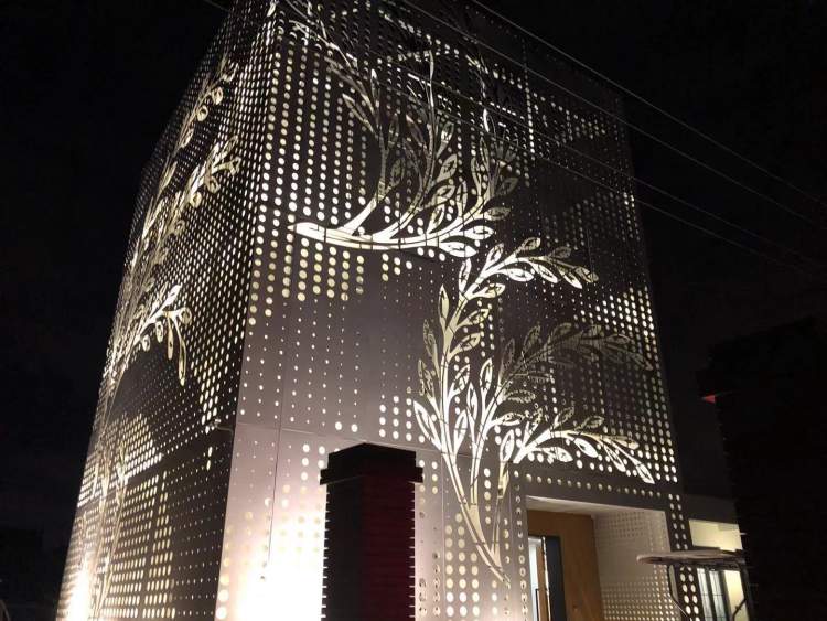 稻香之家以“稻”为主要元素,麦穗图案的镂空雕花外墙,夜幕降临时,屋内的灯光从缝隙中透射而出明亮的光,充满自然质朴的艺术感。屋内随处可见以“稻”为元素的物件,墙上的稻穗浮雕图案,不禁令人惊叹“原来稻子也可以这么时尚”。