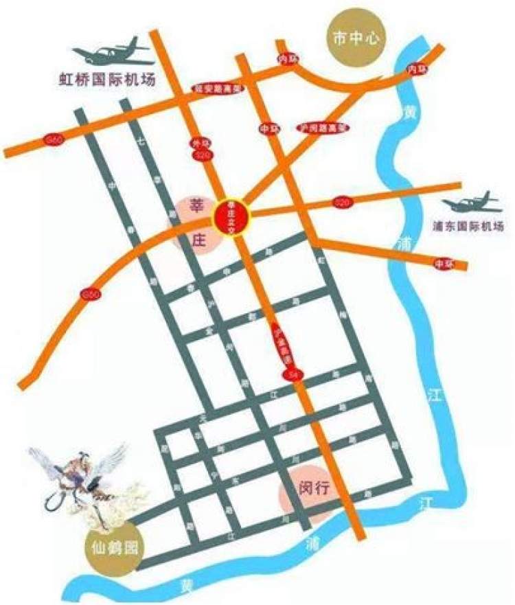 1、沪闵高架—春申路—沪闵路—江川路—仙鹤园;
