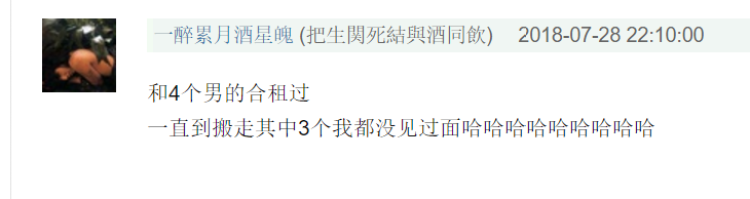 网友“一醉累月酒星魄”:和4个男的合租过,一直到搬走3个我都没见过面;