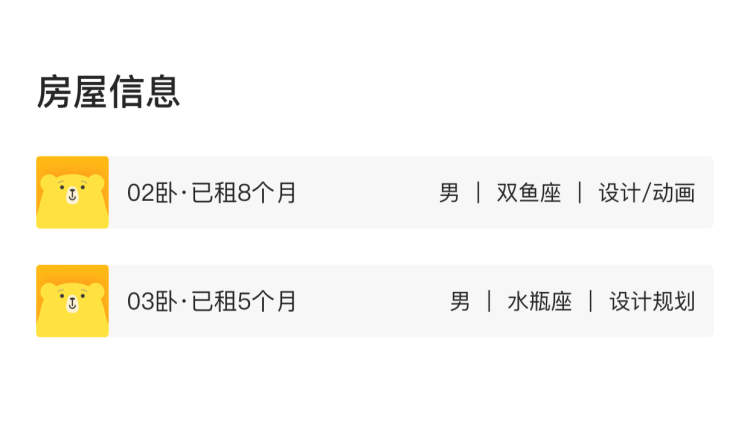 “蛋壳”除了室友工作类型不显示,合租室友性别、入住时间和房间、星座都会显示;