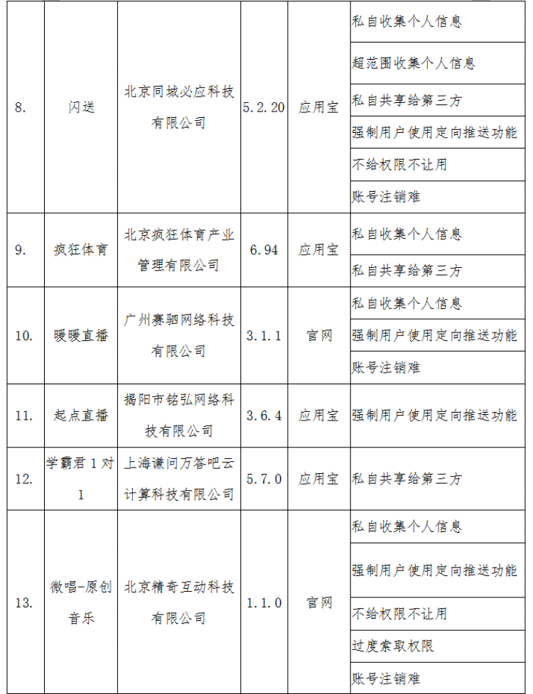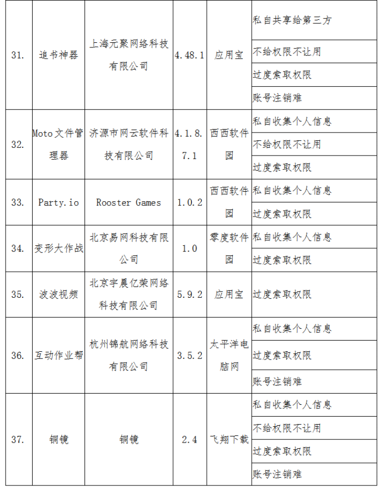 截至目前,尚有41款APP未完成整改,其中,腾讯 QQ、QQ阅读、新浪体育、小米金融等在列。上述APP应在12月31日前完成整改落实工作,逾期不整改的,工业和信息化部将依法依规组织开展相关处置工作。
