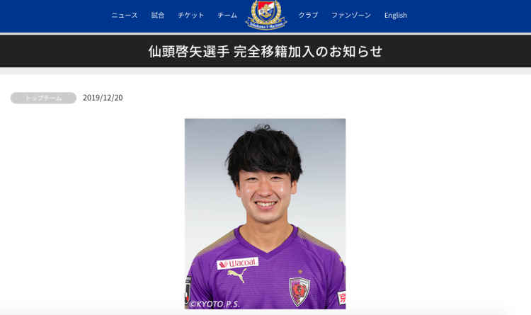仙头启矢此前效力于J2联赛的京都不死鸟,该队本赛季位列日本二级联赛第8。场上位置是攻击型中场的仙头启矢是京都不死鸟队中的第二射手,2019赛季在联赛中打入10球。