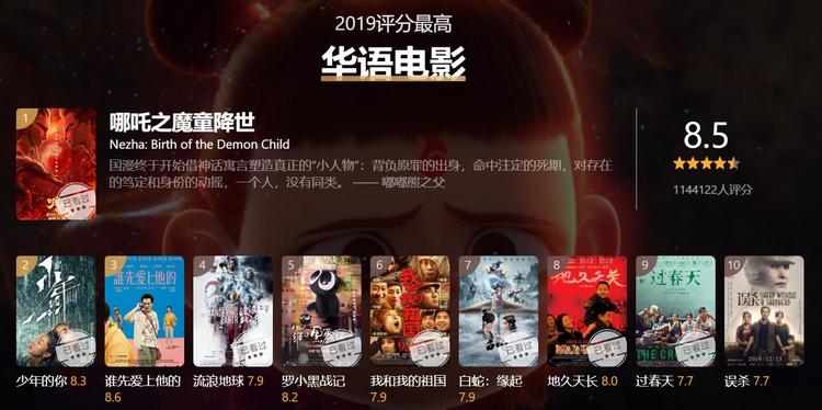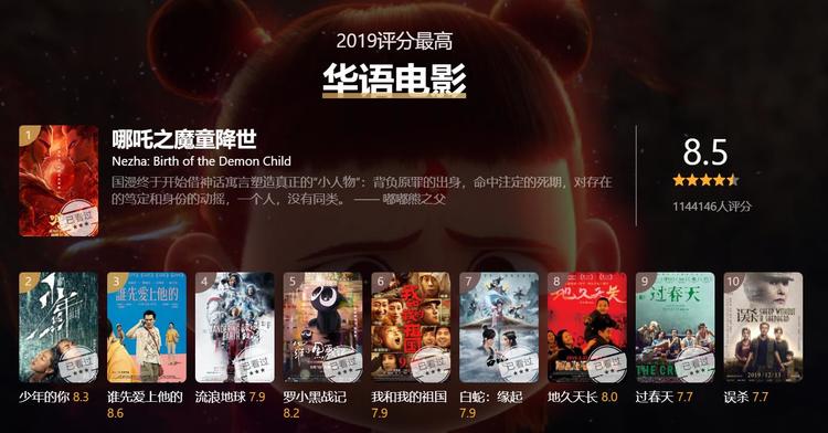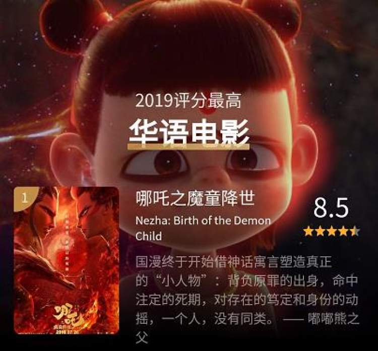 评分第一的华语片是:《哪吒之魔童降世》!