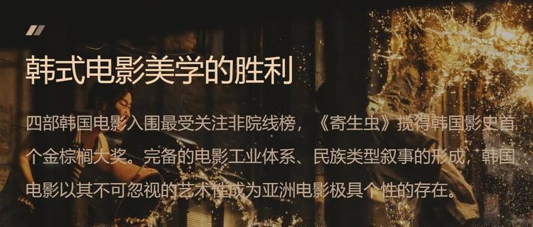 又以“英雄主义”和“韩式电影美学”总结最受关注的十部院线片和十部非院线片。