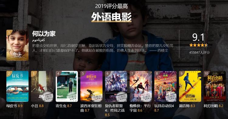 2019年豆瓣榜单,影视部分率先登场。