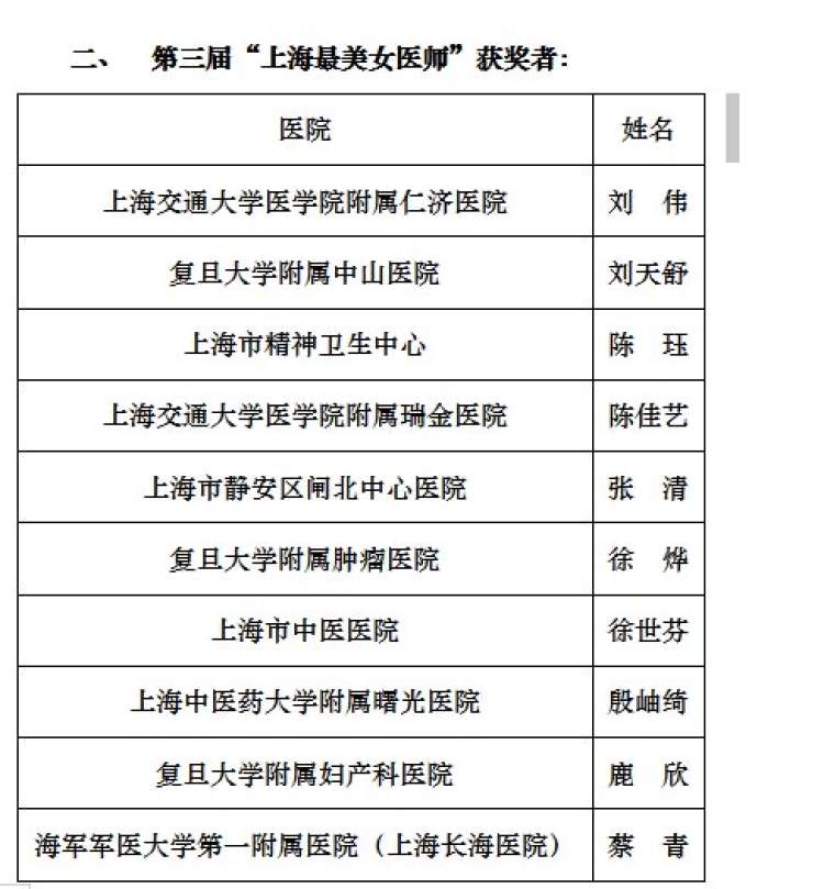 今天的“最美女医师”代表了上海所有的女医师群体,她们医德与医术并重,无私奉献在工作岗位上,无愧“最美”之名。