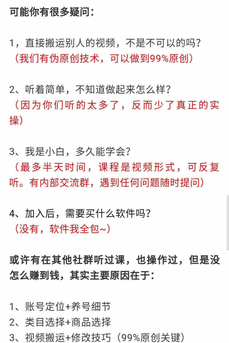 “是不是需要真人出镜?是不是要买专业设备?我的回答是,以上都不需要!一个号,一天操作时长30分钟,一个账号一个月1000-2000元不等……”