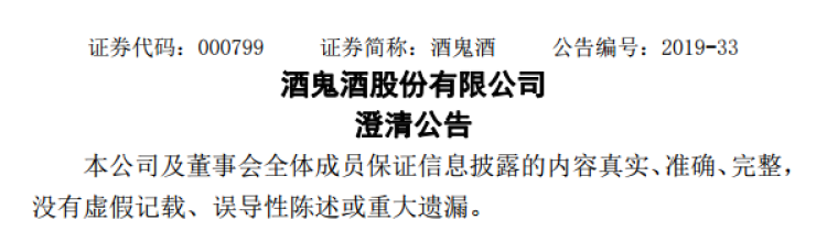 酒鬼酒公司已经“3连”否认:绝不向任何要挟、勒索妥协!