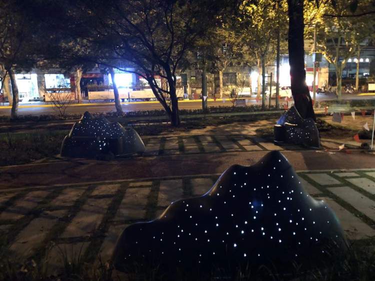 为了满足部分夜间锻炼居民的需求,绿道还配置了独特的灯光。比如,一块白天看起来很普通的“石头”,到了夜晚会发出闪闪“星光”,这是最新的灯光技术。