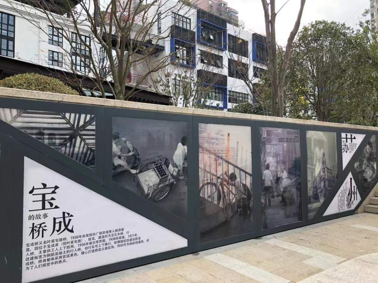 绿道的两侧不仅有风景:原先沿河较为密度的植物被抽稀,打开视觉通道,种上银杏、乌桕、榉树等色叶乔木和樱花、紫薇等开花乔灌木,铺上绣线菊、六道木等地被植物,高中低层次分明;苏州河绿道还有故事:位于叶家宅桥两侧的宝成湾曾经是上海纱厂最为集中的地区,一度中国1/5的纺织业集中于此,因此也被称为“纱厂湾”。