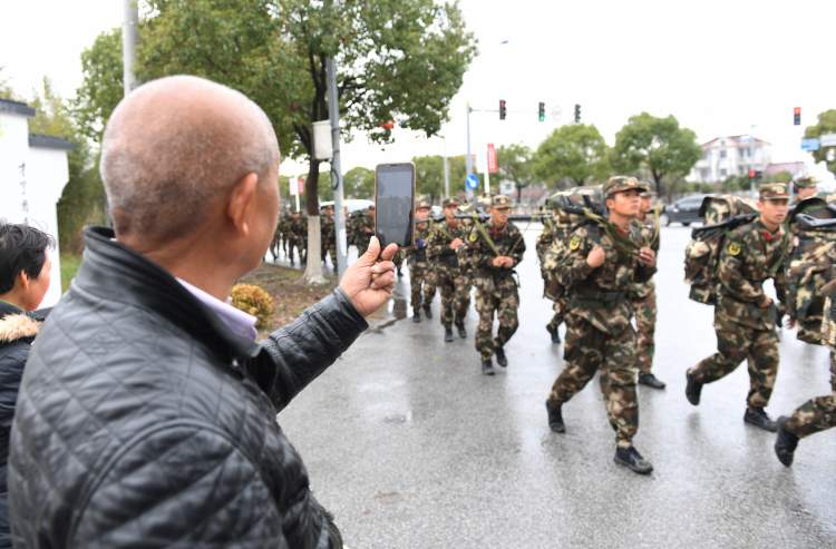 12月22日早上7:55,上海奉贤某新训基地,伴随着一声刺耳的警报声,千余名武警新兵整装齐发迈上拉练征途。