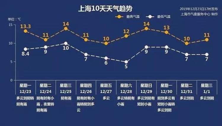 气温起伏、雨水反复 不是下雨升温就是降温下雨 周到君 2019-12-24 来源:周到上海 今天阴有时有小雨,最高温度11度,最低温度9度。明天阴有雨,雨量将达中雨程度。预计周四后期北方冷空气会抵沪,届时风力增大、气温下降、降水间歇。周末雨水再度登场,气温反弹,周六最高12度,周日可达14度。气温起伏、雨水反复,大家注意预防感冒! 来源:周到上海 作者:周到君 赞一个 (0)