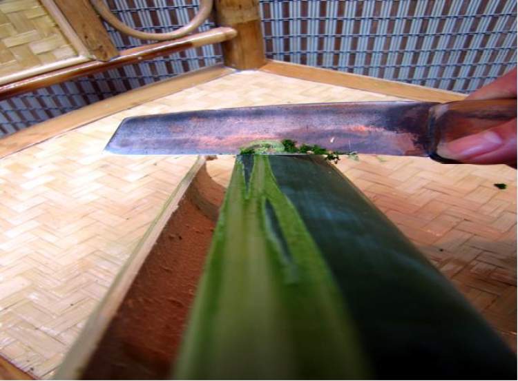 竹丝扣瓷,顾名思义,以瓷为胎,用细如发的竹丝依胎成型,通俗说就是给瓷器杯子、水壶等做“外套”。竹丝扣瓷工艺起源于清代。选60厘米以上2-3年的慈竹,经过刮青,破竹,烤色,去节,劈篾,定色,刮平,划丝,匀刀等多道工序,100斤竹子制作成8两左右的竹丝。竹丝扣瓷编成的竹编“外套”,随瓷器表面凹凸,与瓷器浑然天成。
