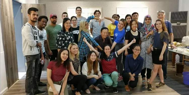 ■杨建文老师与留学生们的合影
