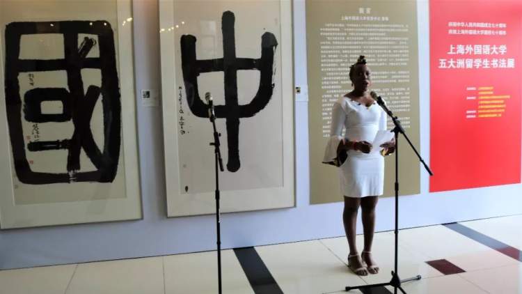 2019年10月,上海外国语大学与上海中国书法院联合主办的五大洲留学生书法展上,来自尼日利亚的秦歌、韩国的裴珠熙、俄罗斯的索菲每人写了一个字,组成了“中国缘”这个展览的主题。每个字都有近1米90的成年人那么高,这些来自五大洲的留学生能用如椽大笔写出古奥的篆书,而且其水准之高,连许多到场的书法家都大吃一惊,更令他们吃惊的是,这些留学生跟杨建文学书法的时间,最长2年,最短的只有2个月!