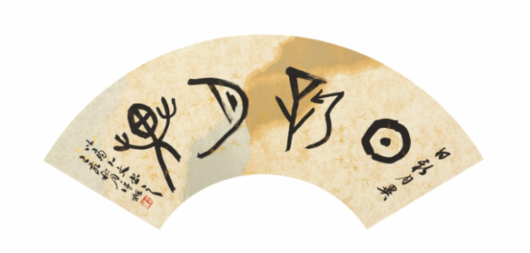 ■ 徐梅 日新月异 扇面甲骨文 33×66cm