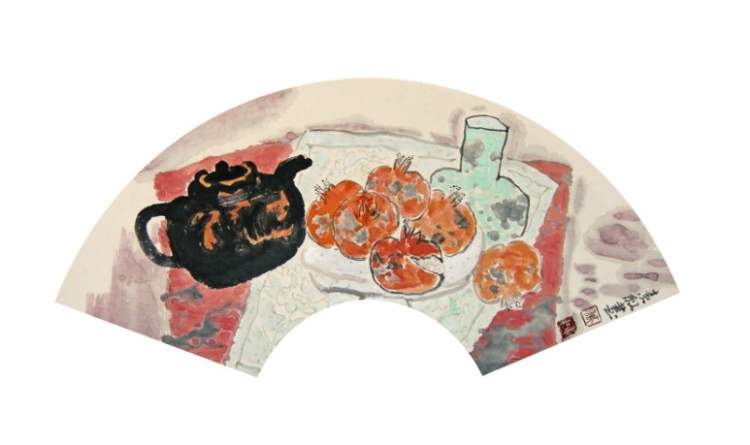 ■ 肖素红 静物扇面之二 33×66cm