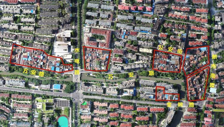 城投万岸地块共涉及7个地块,东至新市南路,南至奎照路,西至华严路弄地,北至公安街。共有居民507证、818户,企事业单位75证。由于房屋低矮老旧,散布排列在长约一公里的区域内,且与周围的高楼大厦形成鲜明对比,因此被这里的居民们自嘲为“七个小矮人”地块。