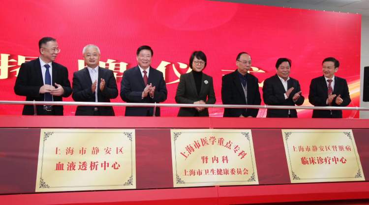 仪式现场,“上海市医学重点专科肾内科”、“上海市静安区肾脏病临床诊疗中心”、“上海市静安区血液透析中心”揭牌,静安区闸北中心医院、静安区中心医院、北站医院、市北医院、邮电医院被授予静安区血液透析质控联盟单位铜牌。