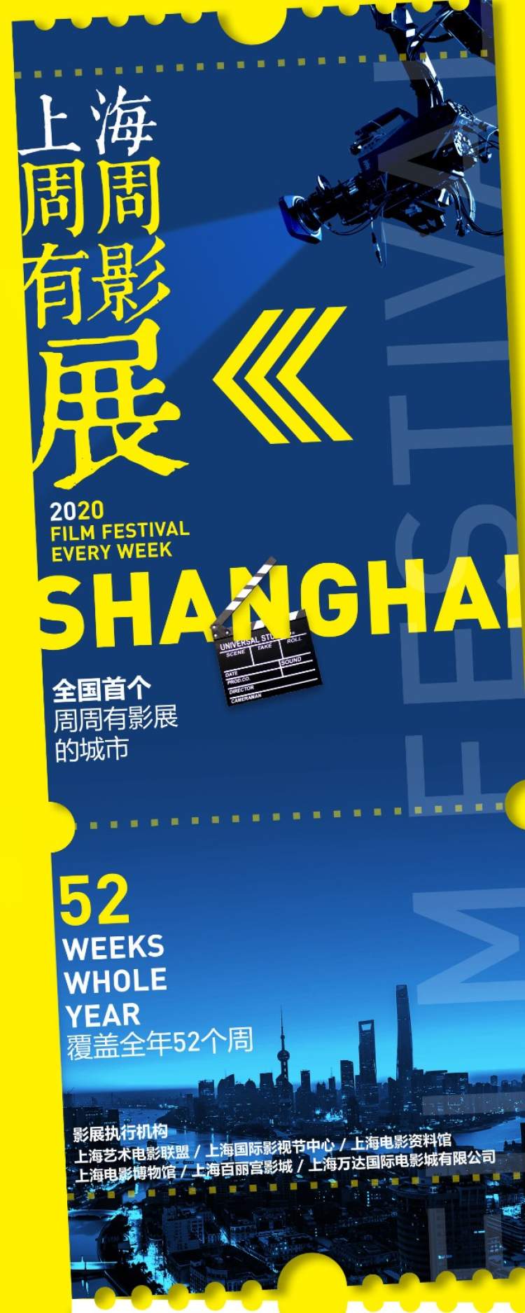 今天,上海市电影局发布2020年上海“周周有影展”计划。从明年起,上海全年52个周,周周都有种类丰富的海外展、专题展、大师展等影展,成为全国首座每周都有电影展的城市。