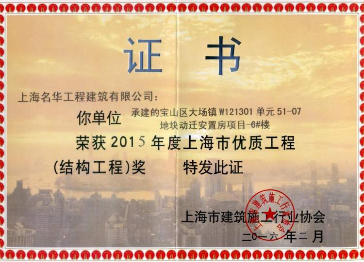 ■白玉兰奖证书