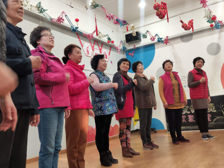 “我们年纪大了,记东西本来就难。”成员们七嘴八舌地开着玩笑,“我们在家背好的呀,但是一到正式排练,一紧张就又忘了。”