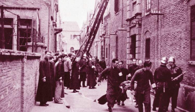 ■1943年,在法租界举行的一场消防演习