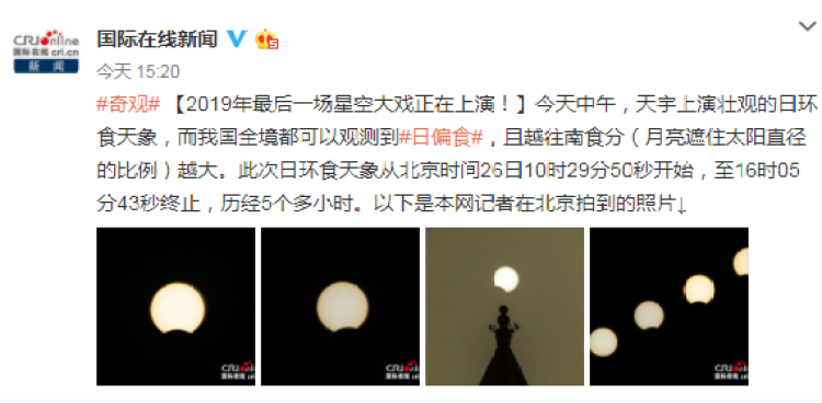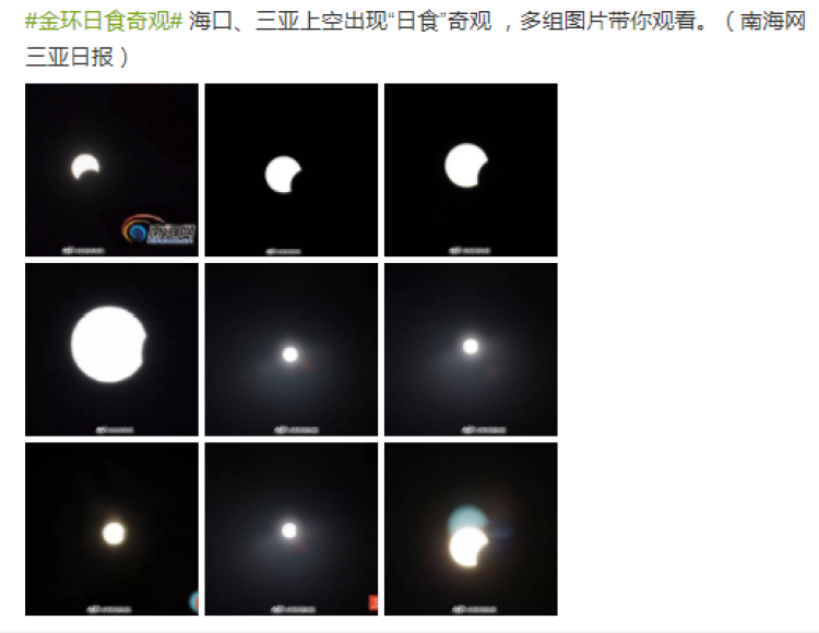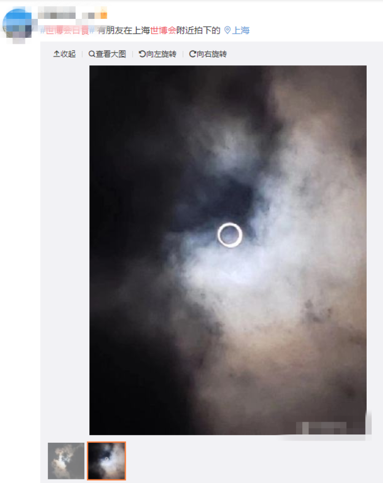 结果引发了网友争议。有网友直言这组照片肯定不是上海拍摄的,这次上海境内只能看到日偏食,不可能看到图中的日环食;有网友直接开怼,表示不应该借不实照片蹭热度。