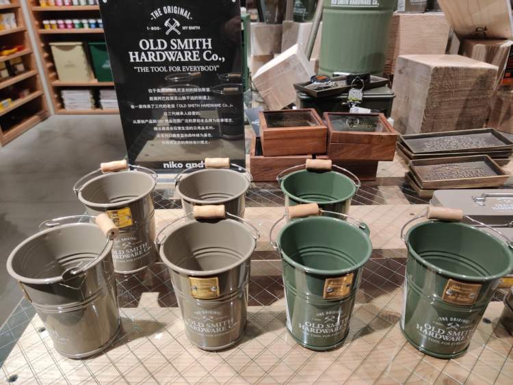 本以为OLD SMITH是第三方品牌,没想到它是niko and…自家的工业风家居品牌。他们跑到美国阿帕拉契山脉山脚下的小镇,找到这家做了三代DIY用品的“工具世家”,生产的系列产品包括印有“OLD SMITH”logo的水桶、工具箱、收纳箱、脚踏式带盖垃圾桶等。