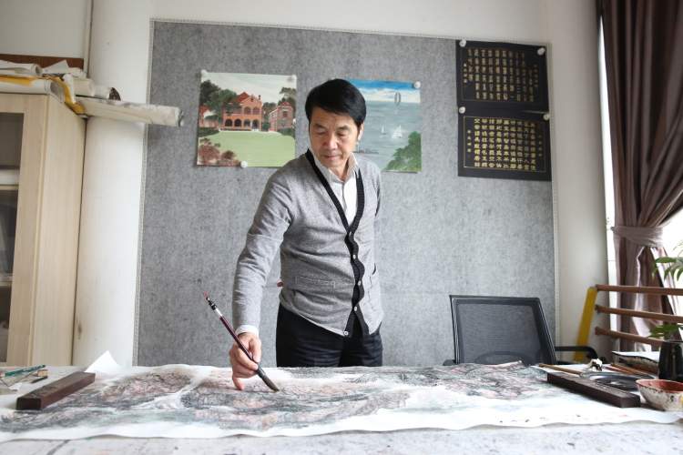 然而,创作的冲动很快便被理性所打消。常年从事中国国画创作的岳长斌知道,国画的特色在与点线面的运用与水墨的蕴燃。“可现代化城市的建筑丛林不同于山水,生怕自己的胡乱创作为这座美丽的城市抹黑。”然而,家人和朋友都纷纷劝他打消顾虑,毕竟艺术创作绝非一成不变,不试试怎么知道效果如何。在旁人的鼓励下,岳长斌便在常规国画创作的同时,开始了额外的写生特训。
