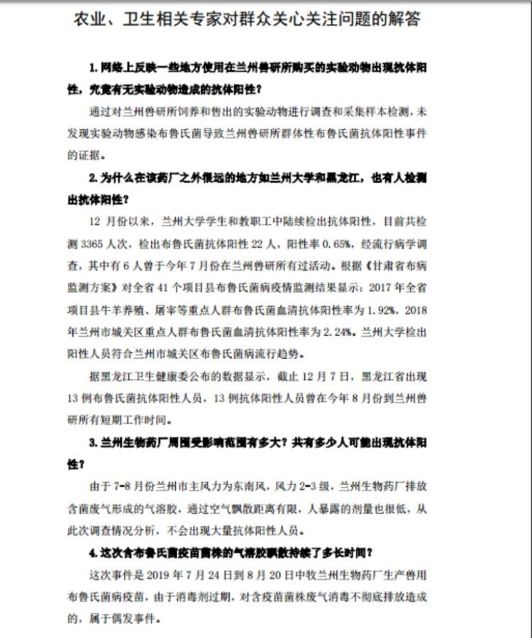 “此次事件是一次意外的偶发事件,是短时间内出现的一次暴露。”上述通报称,造成此次事件的中牧兰州生物药厂布鲁氏菌疫苗生产车间已于2019年12月7日停止生产。