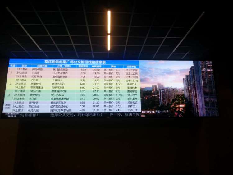 今天上午9点,周到记者来到1号线莘庄站南广场,只见左侧位置就是一幢室内的公交车枢纽站,地面为醒目的红色的陶瓷树脂铺成,使人眼前一亮。抬头看,硕大的LED显示屏上,公交车线路发车的首末班车时间清晰显示。“明天投入运营后,这里的公交车线路将有11条,还有1条定制班线。”工作人员告诉记者。