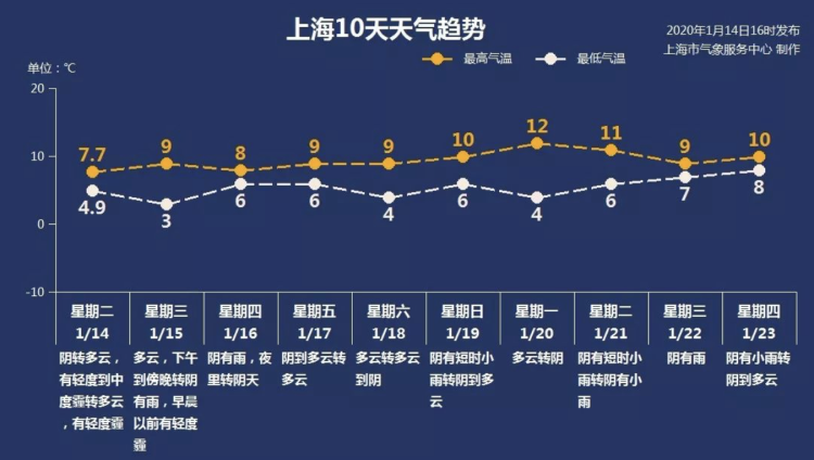 气温方面,今天受冷空气影响,风力有所增大,云系相对较多,气温上升乏力,中心城区徐家汇站的最高气温7.7℃,最低气温4.9℃,户外体感偏冷。