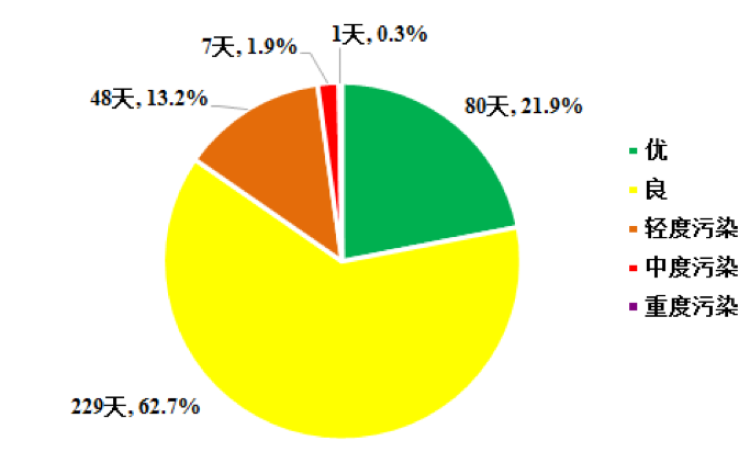 2019年,上海市环境空气质量指数(AQI)优良天数为309天,AQI优良率为84.7%。其中,优80天,良229天,轻度污染48天,中度污染7天,重度污染1天。全年唯一一个重污染日出现在5月,首要污染物为臭氧。