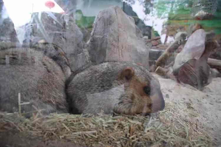 在小动物乐园里有一群土拨鼠,它们的学名是“草原犬鼠”,属啮齿动物,身高一般在28-35厘米,体色为黄色到褐色,体型矮胖。