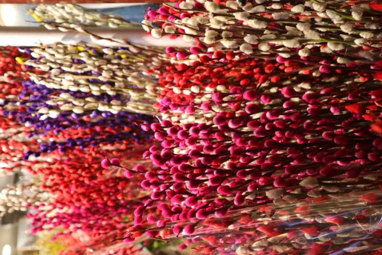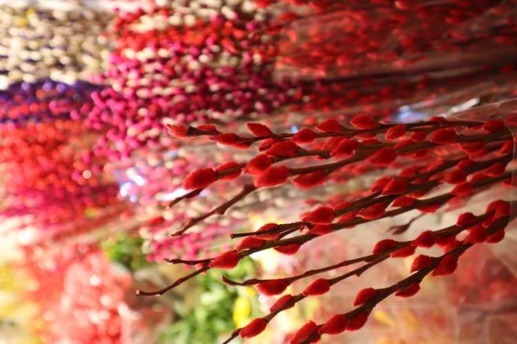 染色后红红的银柳在花鸟市场、花店等地都可以很方便地买到。价格不贵(平均一把10元左右),花期长也是选择它的重要原因!