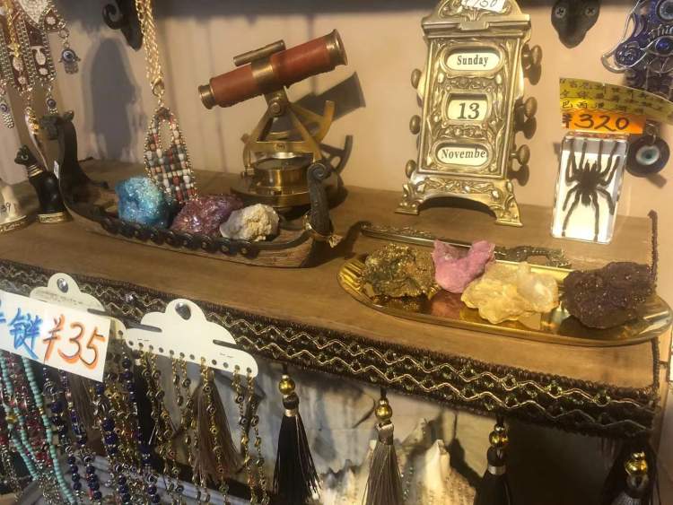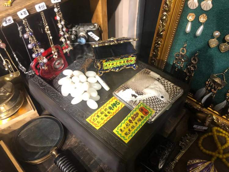 据了解,店里的物件都是老板和老板娘从26个国家淘回来的。在这里,你甚至能找到鲨鱼的牙齿,最毒的蝎子、蜘蛛,还有各种稀奇古怪的小玩意。价格从几十到几百不等,总能挑到合眼缘的。老板和老板娘都是做古玩生意的,在川沙拥有一个大型仓库,有的富贵顾客直接私下里找老板预定高级货了。