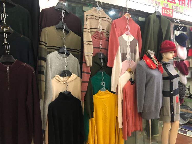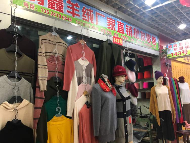市场内其坐拥两家铺位也绝非多数,铺位冷僻却生意好得出奇。这家羊绒厂家直销批发零售店的“大老板”潘女士论起生意经,显得自信满满。