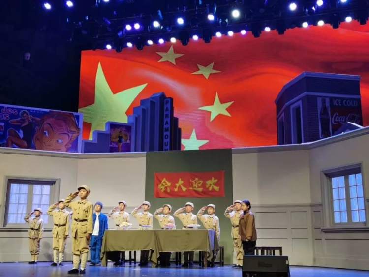 “根据孩子的年龄段,低年级学生扮演群众演员、解放军,配角是四年级,主角是五年级学生,有可能今年的‘主角’在以往几年就是‘跑龙套’的,这样的角色成长,靠舞台剧带给孩子们。”再比如扮演老上海银行职员、资本家、家庭妇女的学生,都要把自己置身那个年代的场景,才能演出“感觉”,所以孩子们反复琢磨文本,想好自己的角色“人设”,读着读着就发现自己走进了书里。