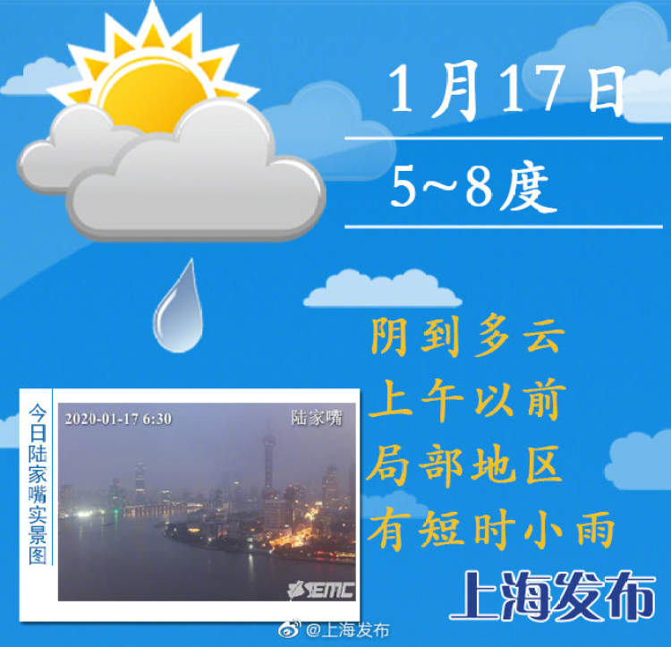 今起四天雨水将暂歇 气温波动不大,防寒保暖别松懈 周到君 2020-1-17 来源:周到上海 今天阴到多云,最高温度8度,最低温度5度。上午以前局部地区有短时小雨,夜里到明天多云。今天起四天雨水将暂歇,以阴到多云为主,大家可以抓紧洗晒。气温波动不大,防寒保暖别松懈。21日起又将进入天天有雨模式,这波降水预计将持续到春节。 来源:周到上海 作者:周到君 赞一个 (0)