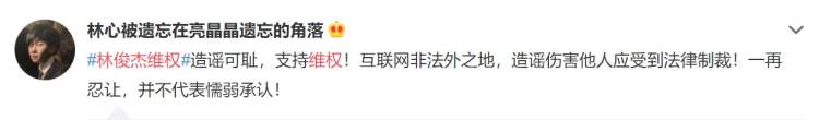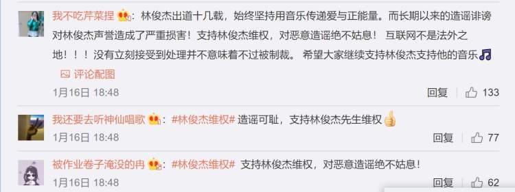 歌迷拍手称快,表示支持林俊杰维权:造谣可耻,一再忍让,并不代表懦弱承认!